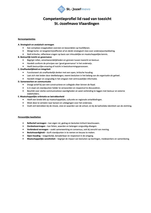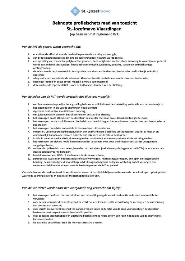 Vanwege het aflopen van de zittingstermijn van twee leden rvt per 1 augustus 2026 is de St.-Jozefmavo per die datum op zoek naar twee nieuwe leden voor de raad van toezicht